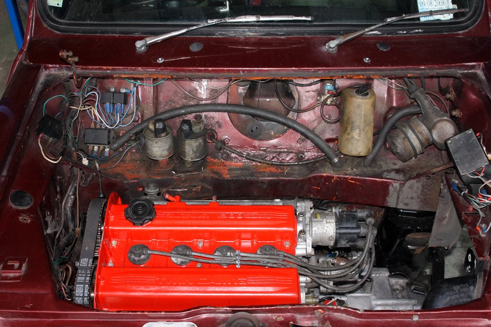 Just by sheer luck I found a Suzuki Swift GTI race car that the owner was about to replace with a late model Suzuki. I bought the car for $1500, took the engine, wire lume and ECU out of the car and through away the car. Actually, I kept the dash and the lights too and the 14” alloy wheels. You never know what it is good for… The wheels are now sold which knocked off a few buck of the purchase price.
