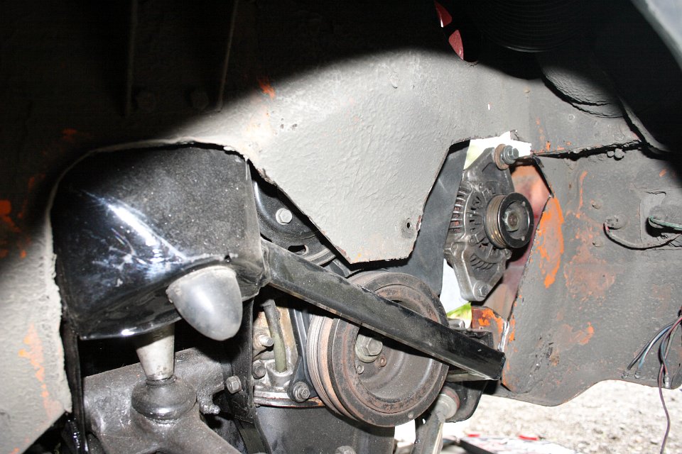 A small modification needed to be made on the driver’s side inner guard to accommodate the relocated alternator.