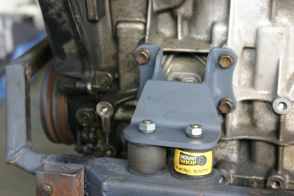 Next on the list were the engine mounts. Again all was designed on the fly. A couple of cuts of angle line, part of the old engine mount, a bit of welding and presto, new engine mounts. According to the specs of the rubbers, only one would have been sufficient but I thought better safe that sorry and fitted two on both the front and back of the engine.