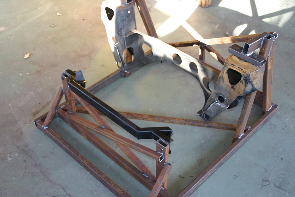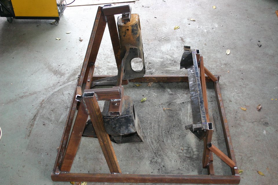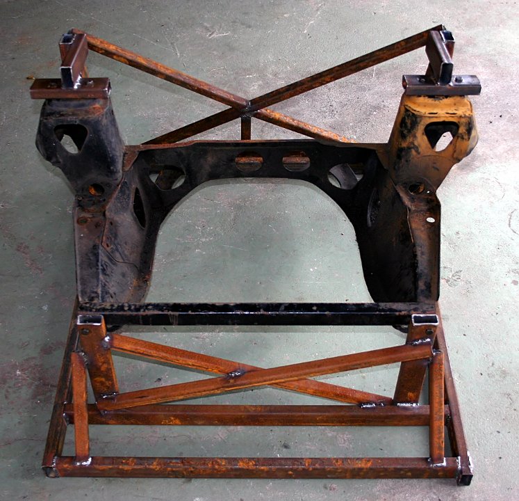 Now how can I chop up the sub-frame and still retaining the mount points? You build a jig around it like this: